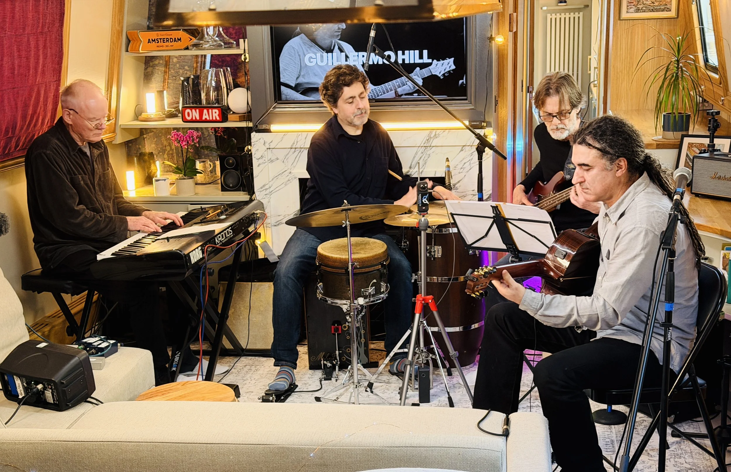 Guillermo Hill brought his new quartet to play their first gig of his new pieces. Inspired by the music of his childhood and youth in Uruguay, with influences from Brazil and Argentina.